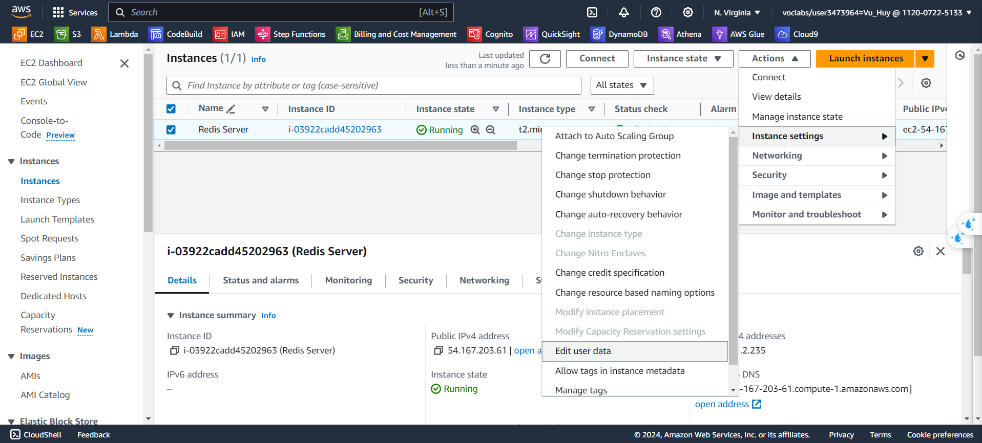 Để edit user data bạn cần phải stop instance trước đó, rồi chỉnh sửa đoạn script theo ý muốn.